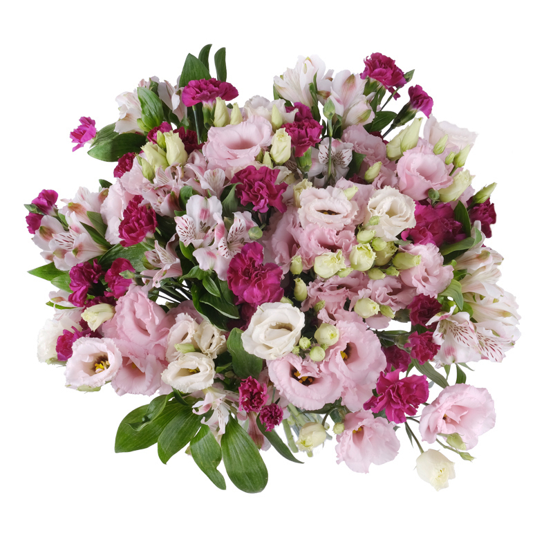 Bukiet „Miłosny list” mówi sercem – złożony z eustomy, alstromerii i goździka, urzeka ciepłem różu i mocniejszych akcentów symbolizujących siłę emocji.