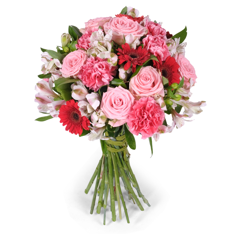 Zawsze świeże kwiaty Ten bukiet to esencja kobiecego wdzięku. „Różowy Spokój” łączy w sobie delikatność kwiatów i harmonię formy. Róże, gerbery, goździki i alstromerie tworzą pełną uroku całość. Idealny na prezent lub dekorację. Dodaj bilecik lub wyślij anonimowo!