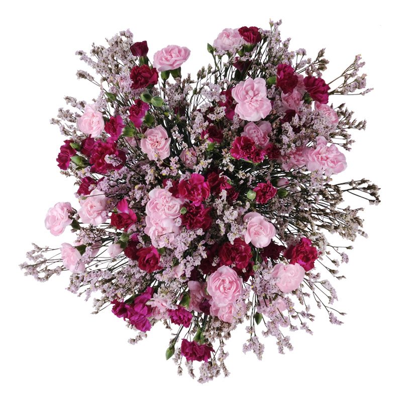Bukiet „Z nutą goździka” to nieco romantyczny, nieco swobodny wybór – złożony z goździków gałązkowych i aktualnych, sezonowych roślin.